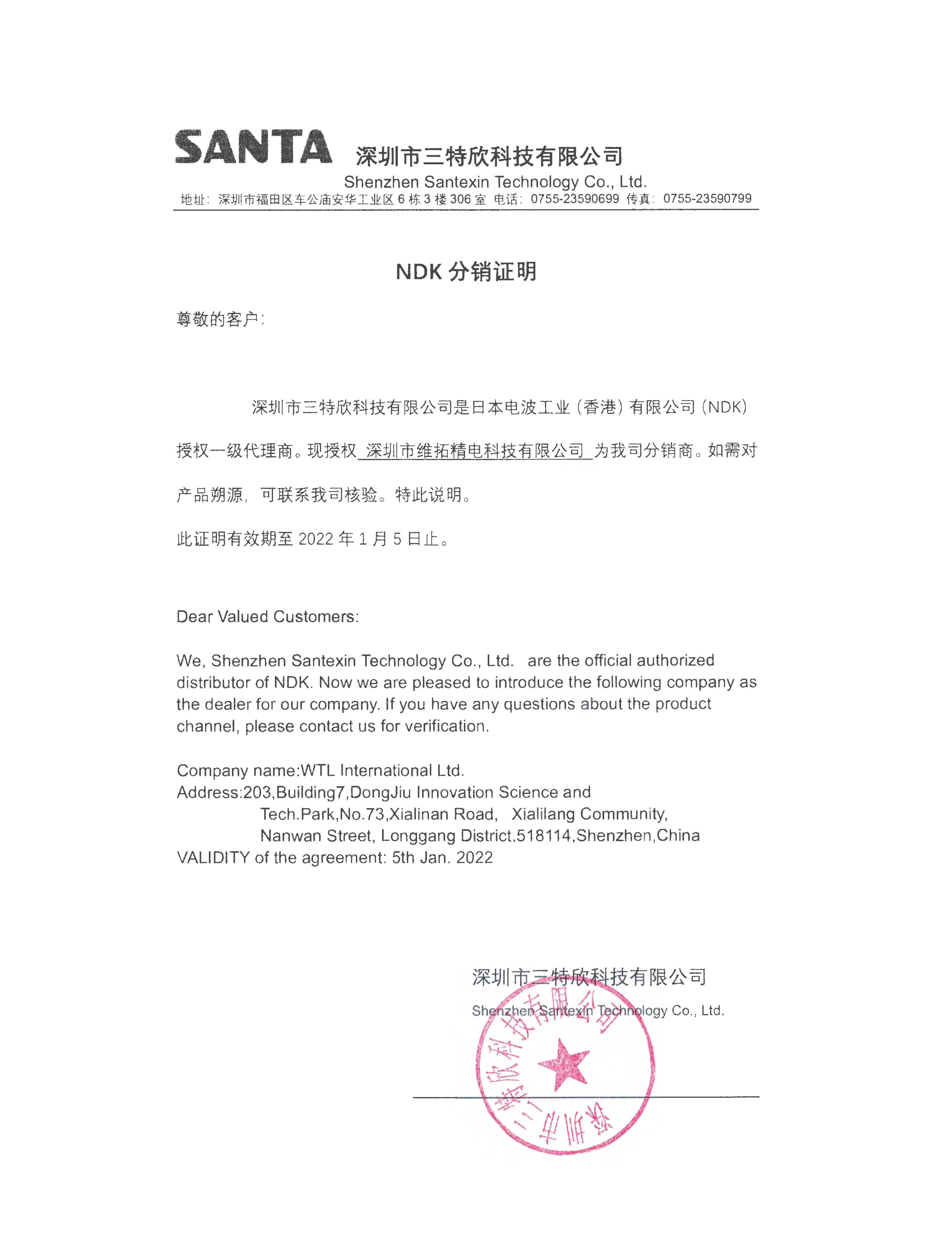 NDK Distribution Authorization to WTL